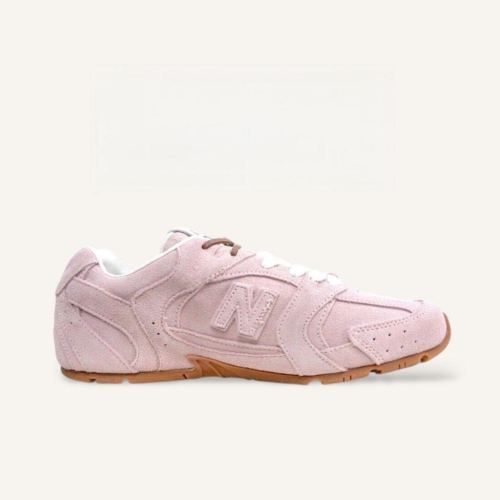 NB x Miu 聯名款粉紅色麂皮拼接運動休閒皮鞋 |牛皮|麂皮|情侶款|休閒|運動鞋|阿甘鞋|德訓鞋 |聯乘