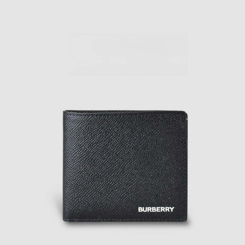 heck and Leather Bifold Wallet 燙印品牌字母徽標粒面雙摺皮夾|黑色|荔枝皮紋|對折|8卡|