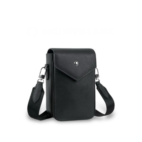 萬寶龍 匠心系列牛皮防刮直式信差包/手機包/小包 中性男女通用款 Black 黑色 磁扣