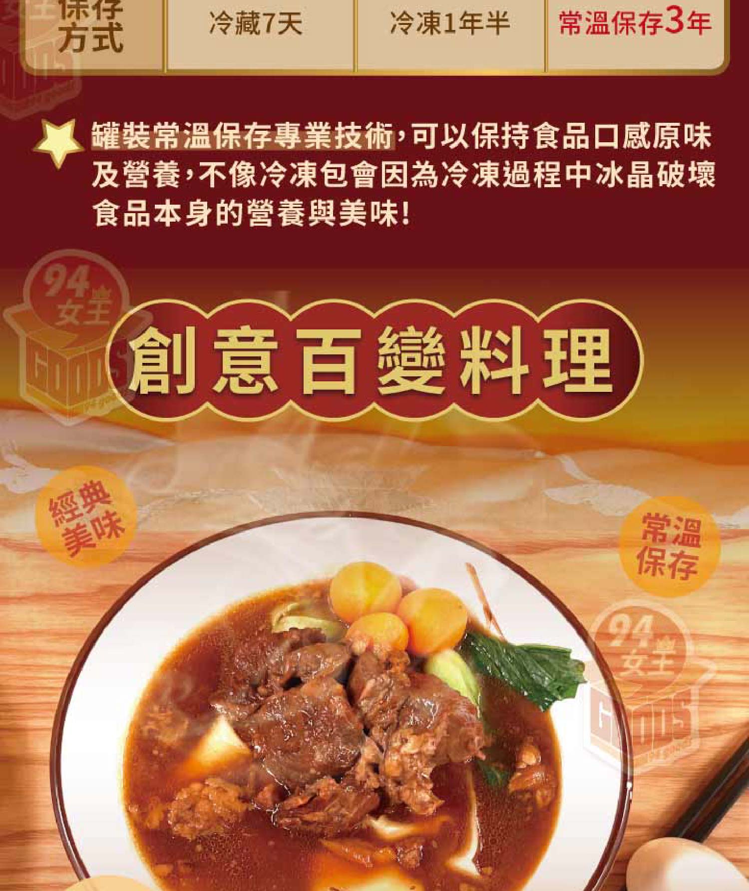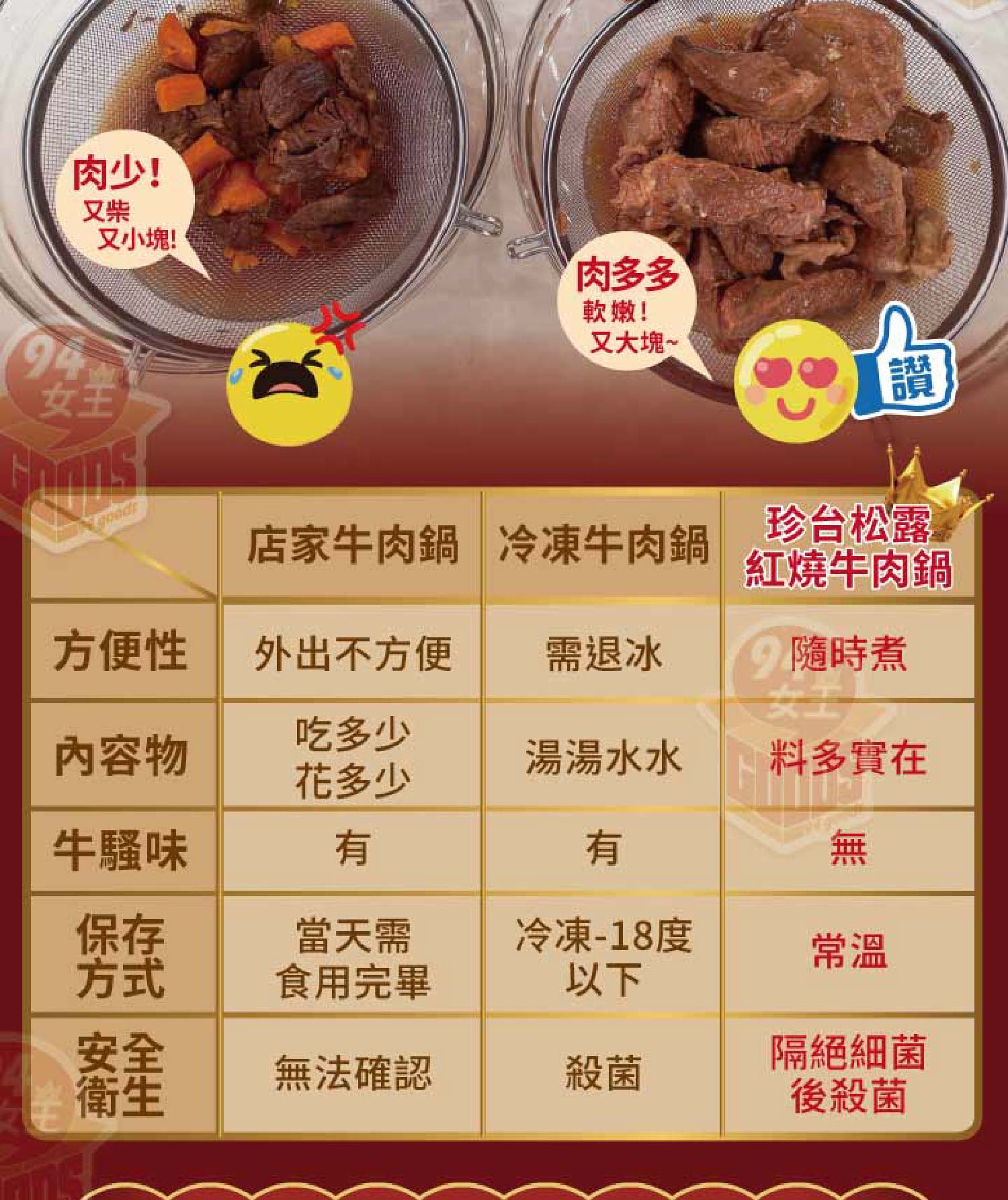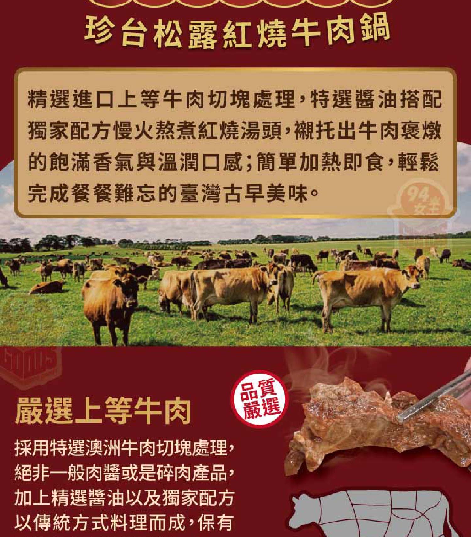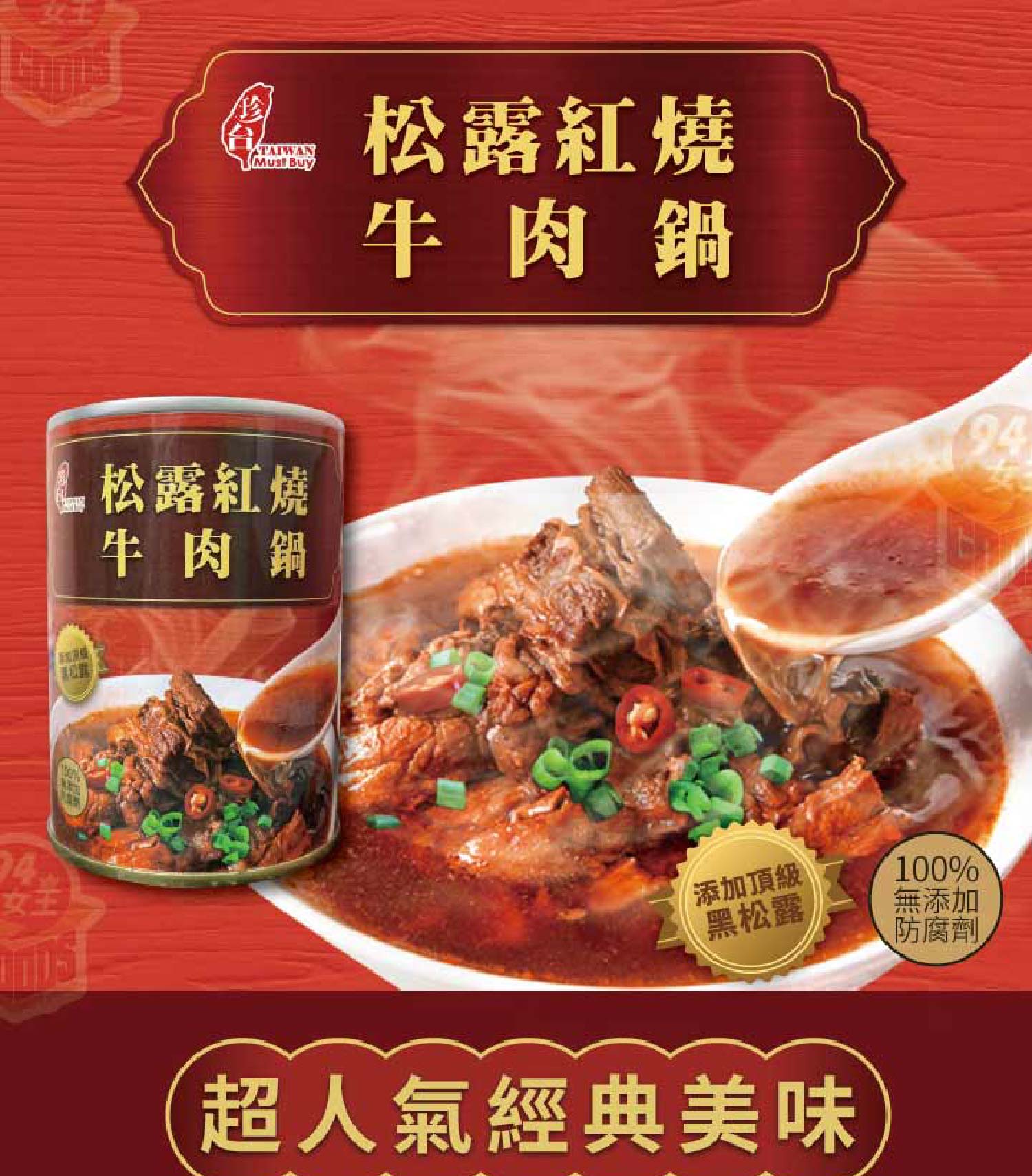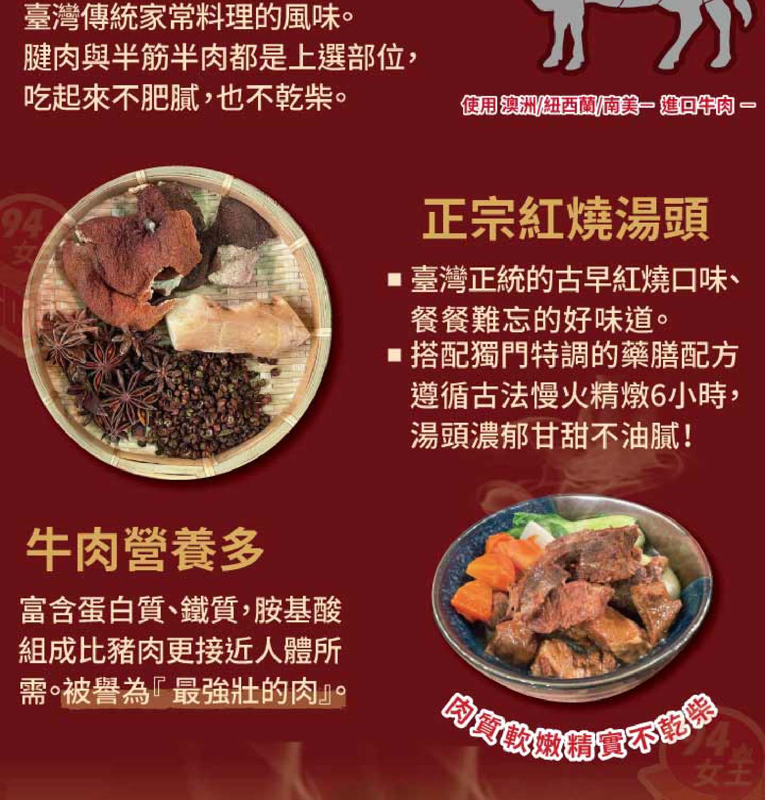 💖台灣最正統的古早紅燒口味、餐餐難忘的好味道。精選進口上等牛肉,請安心食用。