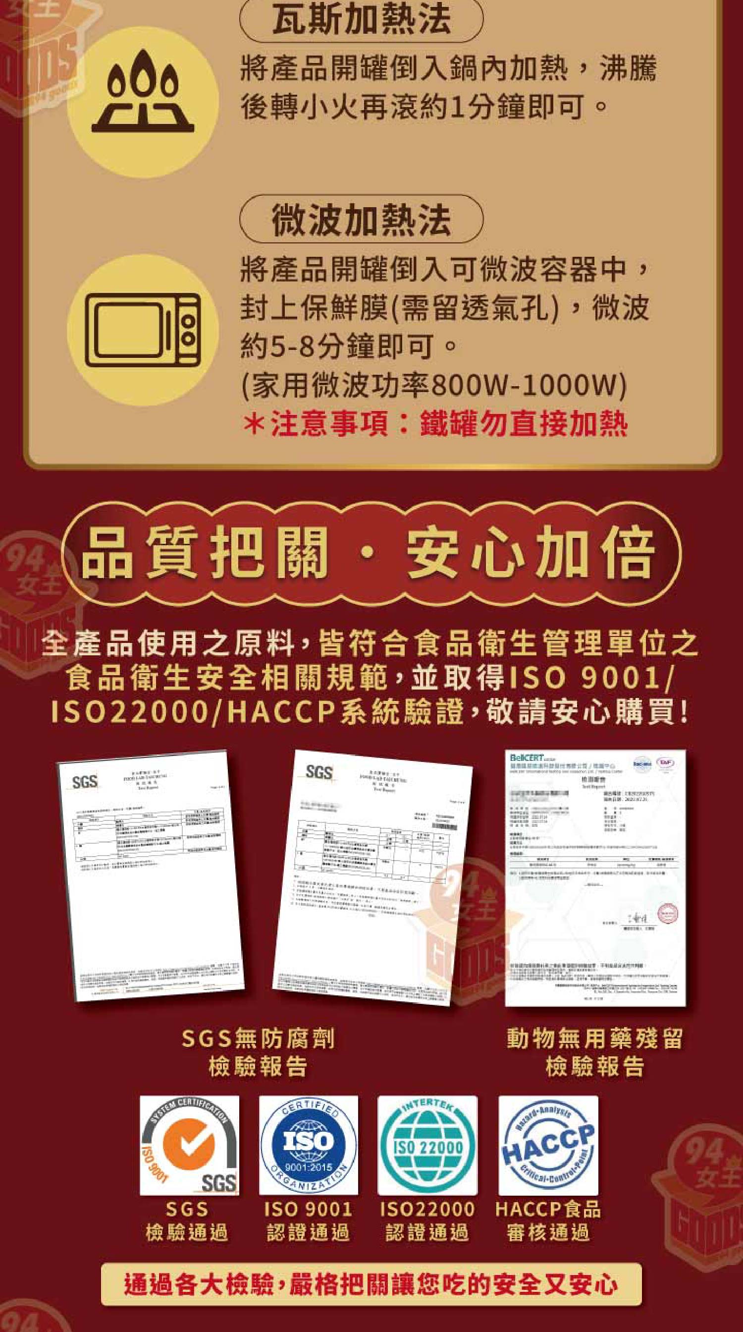 1.打開罐蓋,將內容物放入鍋中慢火加熟至沸騰即可食用。