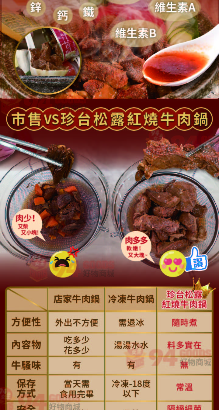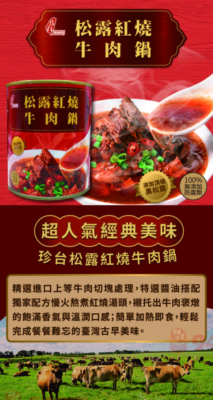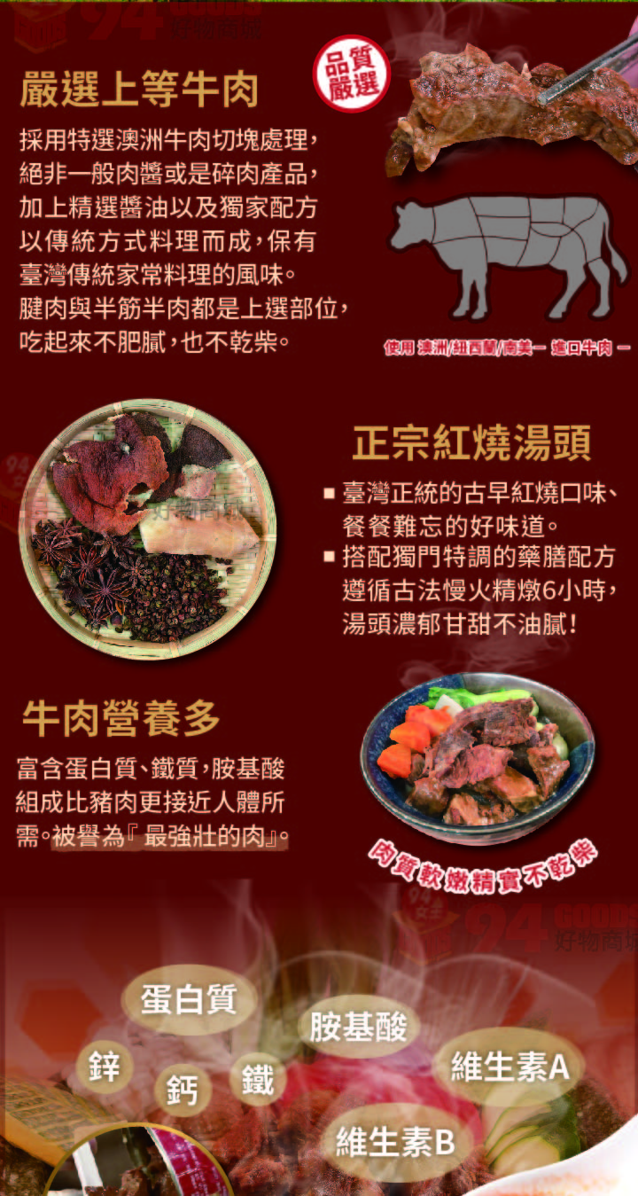 💖台灣最正統的古早紅燒口味、餐餐難忘的好味道。精選進口上等牛肉,請安心食用。
