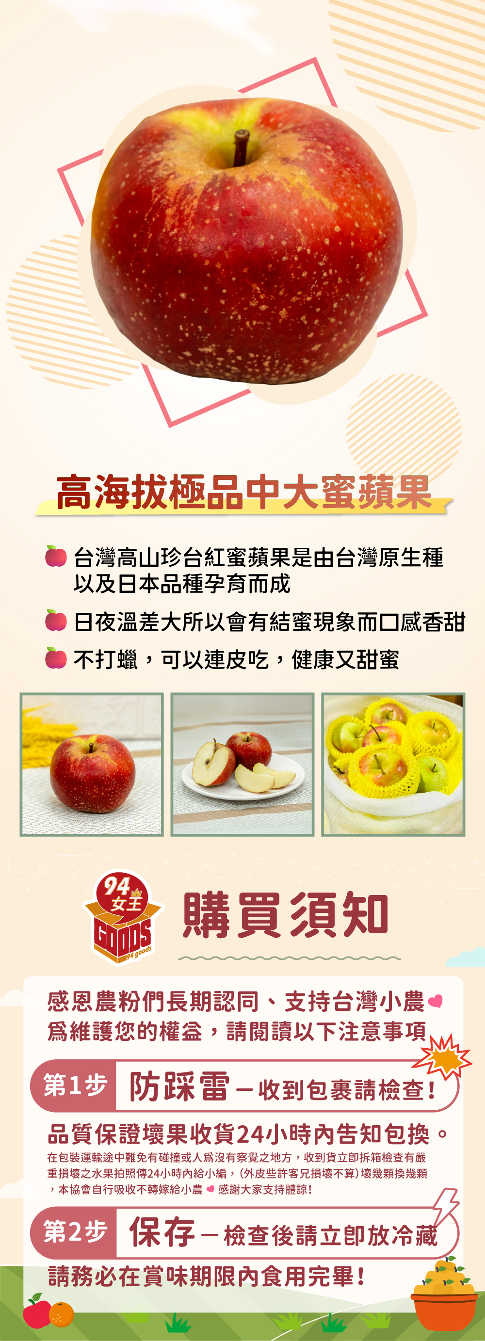 高海拔珍台極品中大蜜蘋果(限量20組)、2層以上即享免運 !!
