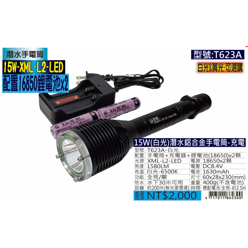 T623A-15W(白光)潛水鋁合金手電筒-充電