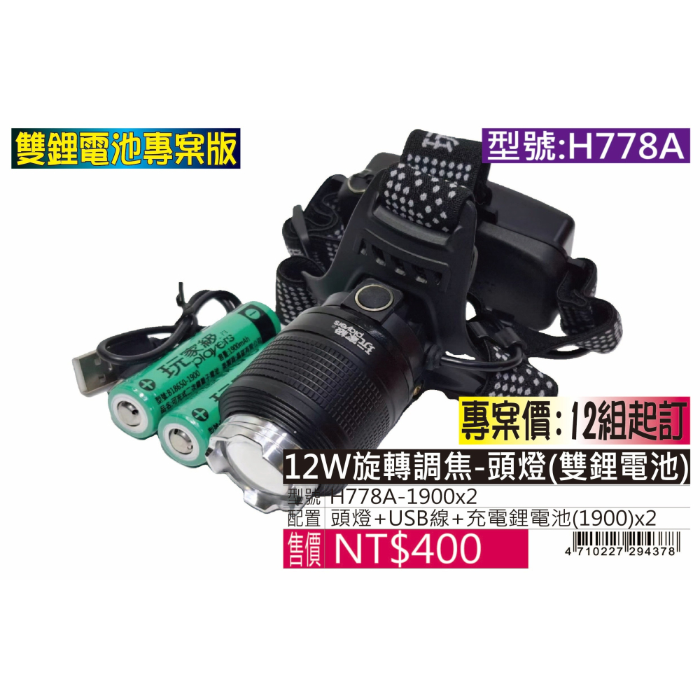 H778A-12W旋轉調焦-頭燈(雙鋰電池)