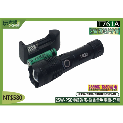 T761A-25W-P50伸縮調焦-鋁合金手電筒-充電