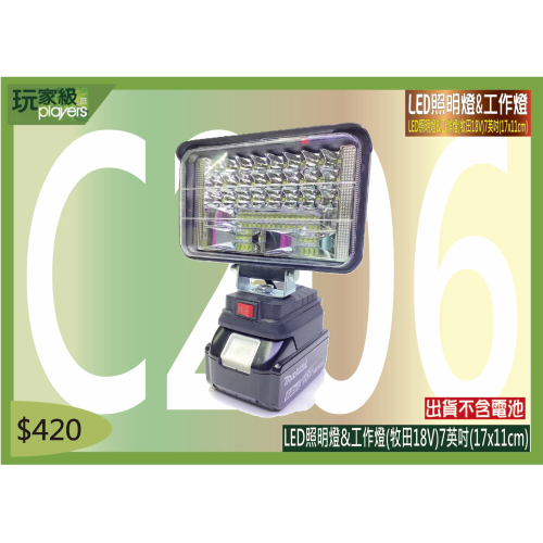 C206-LED照明燈&工作燈(牧田18V)7英吋(17x11cm)