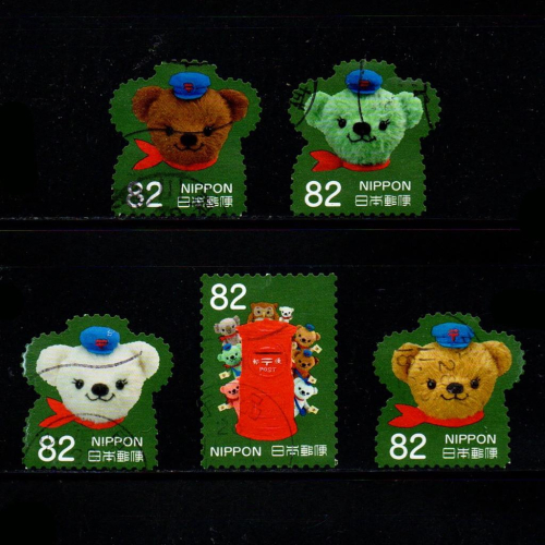 這套是日本郵便局於2016年所推出的郵局吉祥物──郵便熊Posukuma郵票,一套共5張。