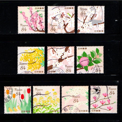 日本郵便局每年都會推出季節性的問候郵票,本套郵票為2020年所推出的「春季的問候」,以春日新芽為主題,展現出春日欣欣向榮的美景🍀(除了春天必不可少的花卉外,還有貓咪、翠鳥、小鴨等可愛的動物穿插其中)