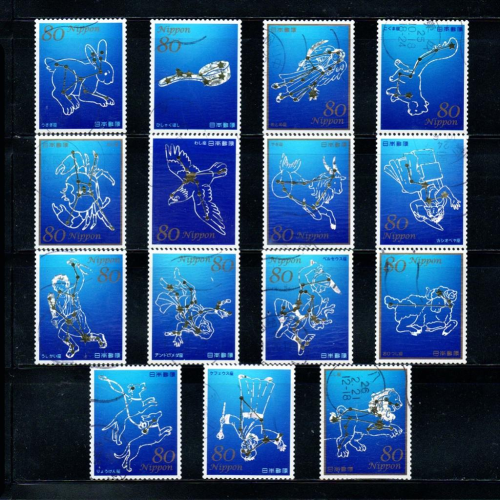 日本郵便局在2011-2013年推出了4集「星座」系列郵票,圖片中的銀色部分採用雷射膜印刷,大大增加了郵票質感。