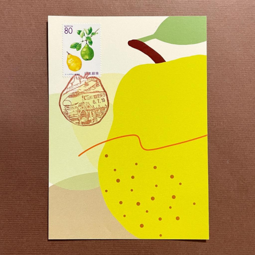 風景印圖樣:高畠町太陽館、法蘭西洋梨(特產)、山形新幹線