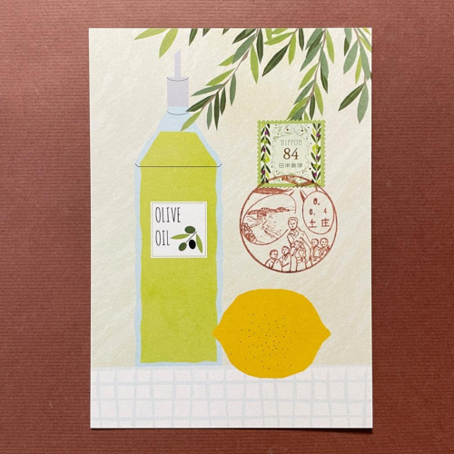 風景印圖樣:位在土庄港輪渡站附近的平和群像雕塑、橄欖、「天使之路」步道