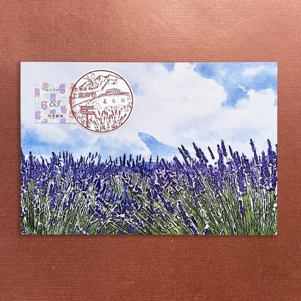 風景印圖樣:十勝岳連峰、日之出薰衣草花園、薰衣草田