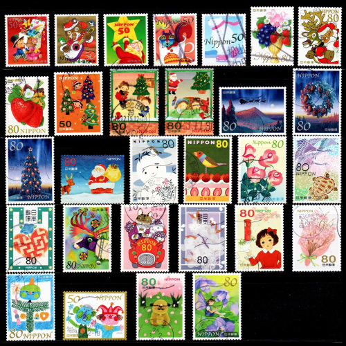 日本郵便局自2003年起,每年都會推出「問候」系列郵票;與後期的小型郵票不同,2013年前發行的問候郵票皆為中大型票幅。。這組郵票是介於2003-2012年發行的問候郵票,合計共29張一起販售。