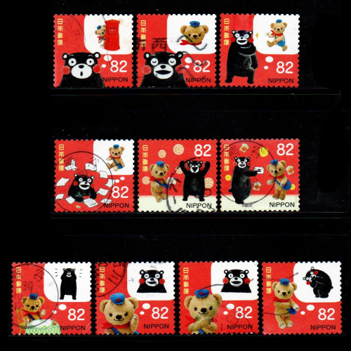 這套是日本郵便局於2018年所推出的另類跨界郵票,由日本郵便局的吉祥物 Posukuma 郵便熊與熊本熊聯合擔任主角。