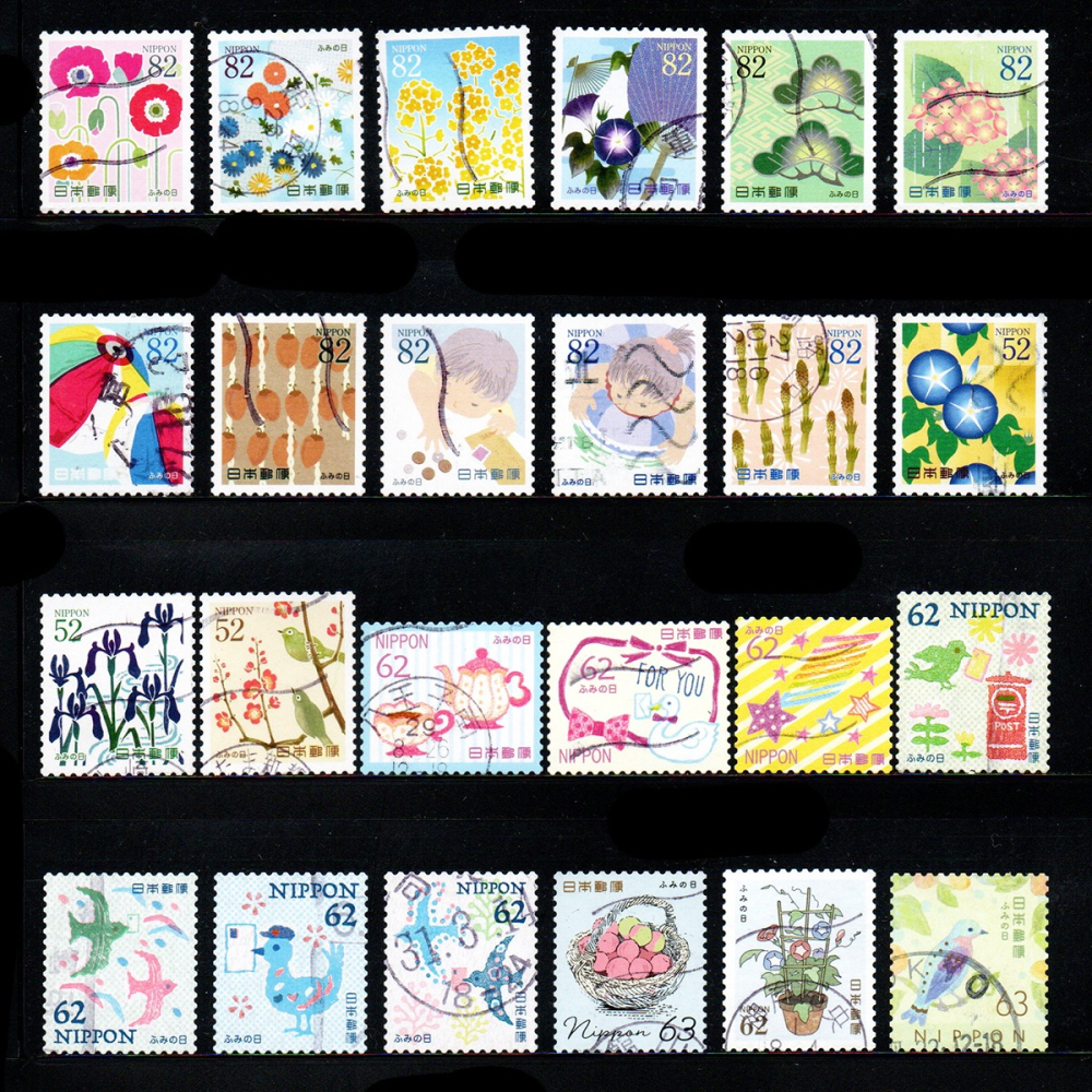 這套郵票綜合了2014年~2015年發行的82円書信日郵票,以及13張收集難度較高的低面額版本郵票,合計共24張一起賣。