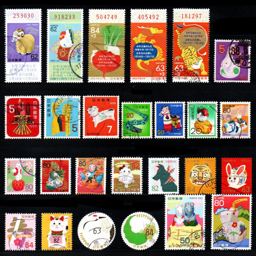 這組郵票包含了早期到近代的生肖與賀年郵票,印有年份的是生肖郵票,沒印年份的則是出自賀年小全張。