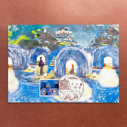 風景印圖樣:橫手雪屋祭、鳥海山、雁群、橫手公園的櫻花、橫手城的模擬天守。