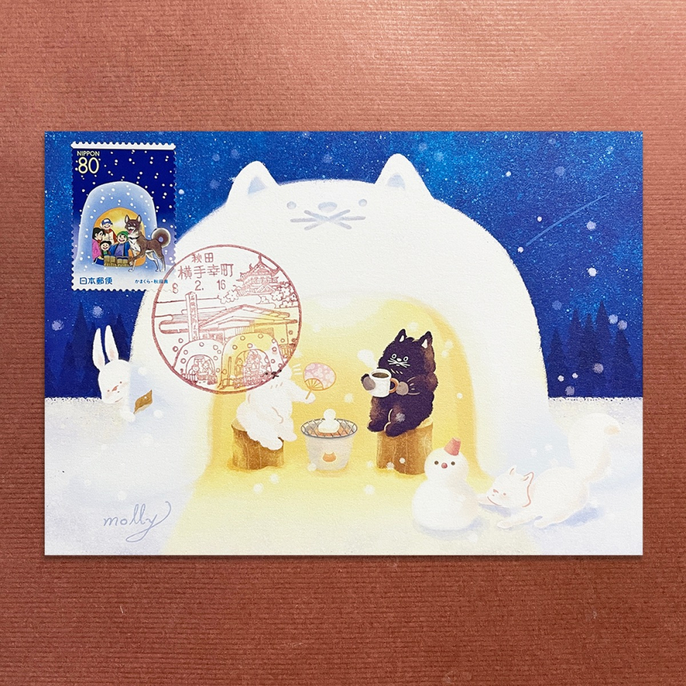 風景印圖樣:橫手雪屋祭、展望台、石坂洋次郎文學紀念館、橫手城與櫻花。