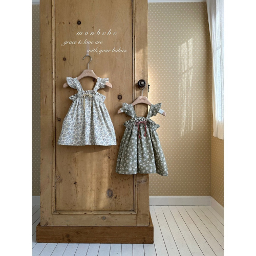 26春 正韓 monbebe Petite Meadow 小田園系列 碎花肩帶洋裝 幼童款(80-120cm)