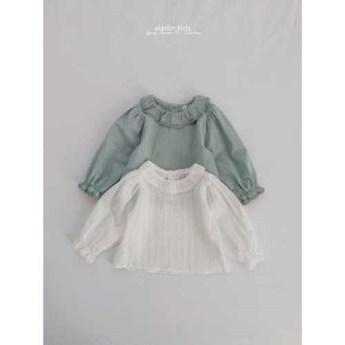 26春 正韓 ALADIN|Gentle Days 壓紋蕾絲 波浪領縮口上衣