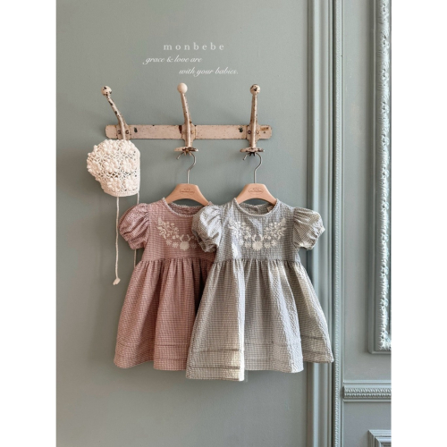 26春 正韓 monbebe 清新刺繡 格紋洋裝 幼童款(另有baby款)