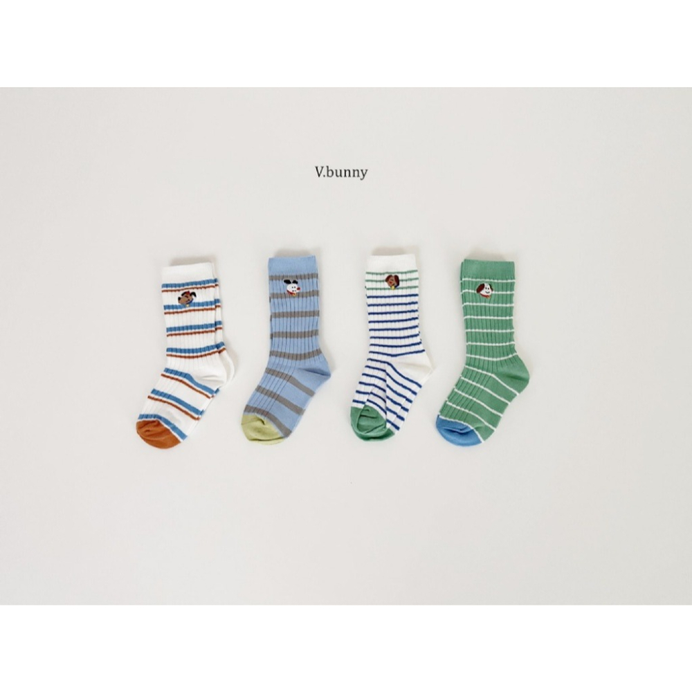 正韓 V.bunny 跳色條紋 中筒襪(四雙一組)