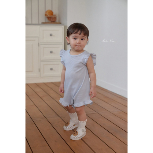 26夏 正韓 BEBENINE|Milk Beige 坑條荷葉邊 連身褲 baby款