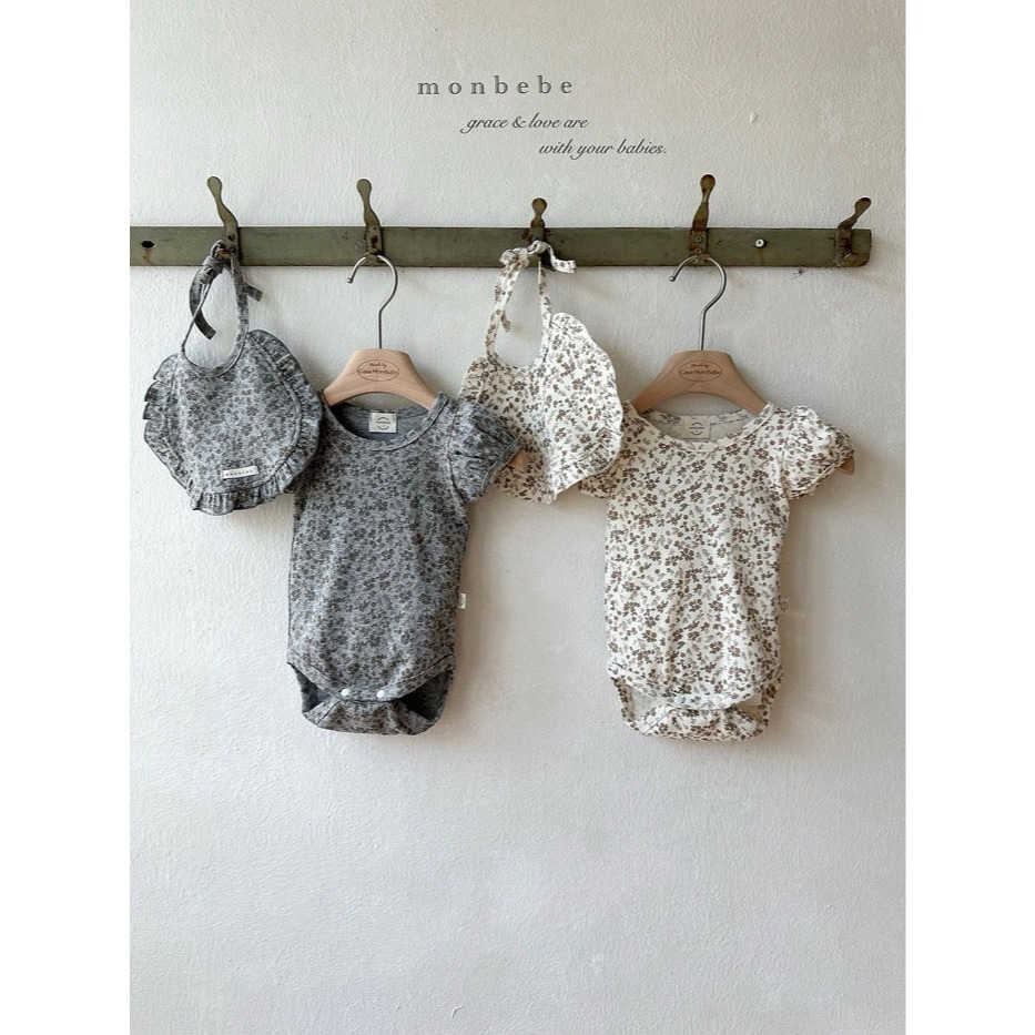 26夏 正韓 MONBEBE|Little Château 質感碎花 包屁衣 附兜兜 baby款