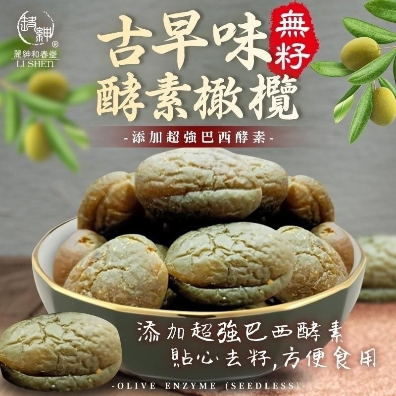 成份:橄欖、蔗糖、鹽、巴西酵素【(植物發酵液:蔬菜果實類:柳橙、鳳梨、香蕉、蘋果、哈密瓜、檸檬、楊桃、番石榴、黑棗、葡萄、西印度櫻桃、奇異果、西瓜、百香果、芒果、木瓜、西洋梨、酪梨、番茄、南瓜、番薯、胡蘿蔔、高麗菜、樹薯、青椒、甜菜、芥蘭菜、蓮藕、大頭菜、菊苣)穀豆堅果類(糙米、黑麥、燕麥、小米、大麥、碗豆、玉米(非基因改造)、紅豆、巴西豆、花豆、黑芝麻、黃豆(非基因改造)、腰果、埃及豆、巴西堅果、黑豆、扁豆)、草本植物類(馬黛茶、大茴香子、檸檬草、丁香、薑黃、薑)、海藻類(海帶芽、昆布、紫菜)、蜂蜜、黑糖】、異麥芽寡糖漿、麥芽糖、DL-蘋果酸、甜味劑(甘草萃)