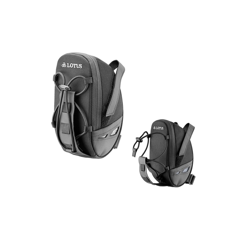 流線型直立式坐墊袋,主要設計特點在前端可放置水壺;大開口設計,容易拿取物品;內部網袋,可以分層收納以及專利可調整式座管固定帶。