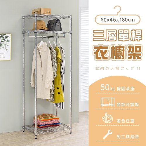 內容件數:三層單桿衣櫥架x1,共1入/組