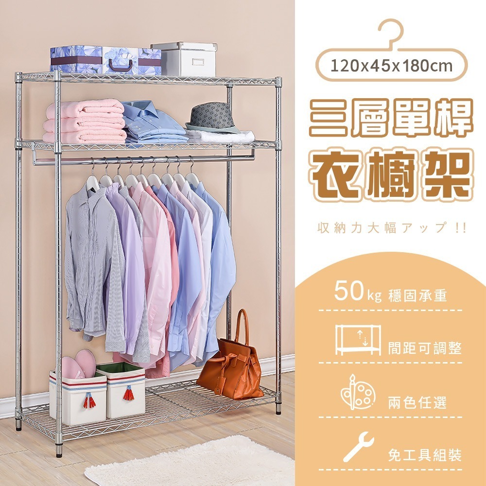 內容件數:三層單桿衣櫥架x1,共1入/組