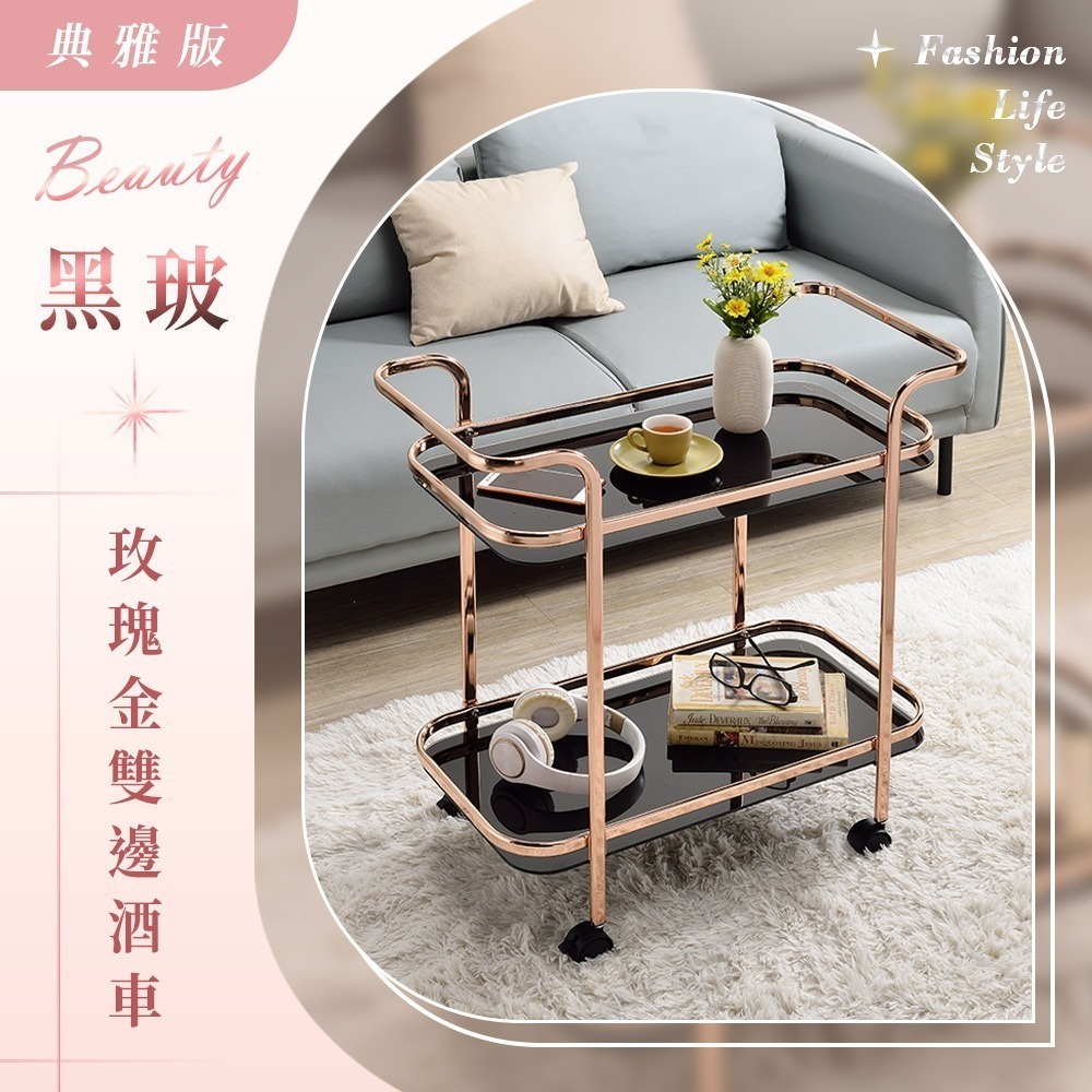 內容件數:黑玻玫瑰金雙邊酒車(典雅版) x1,共1入/組