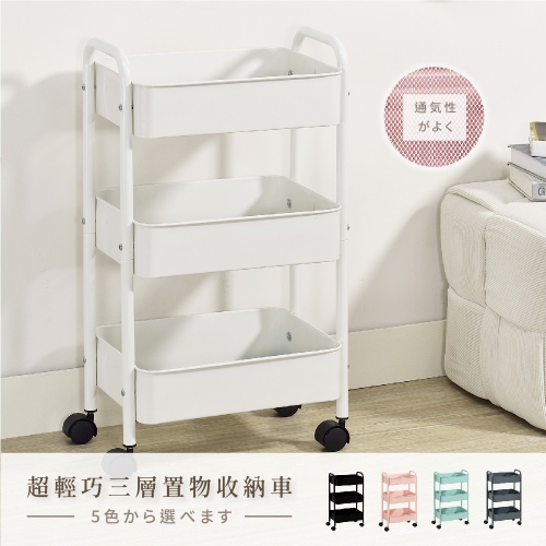 商品材質 : 烤漆鐵管、收納鐵籃、活動輪、塑膠配件