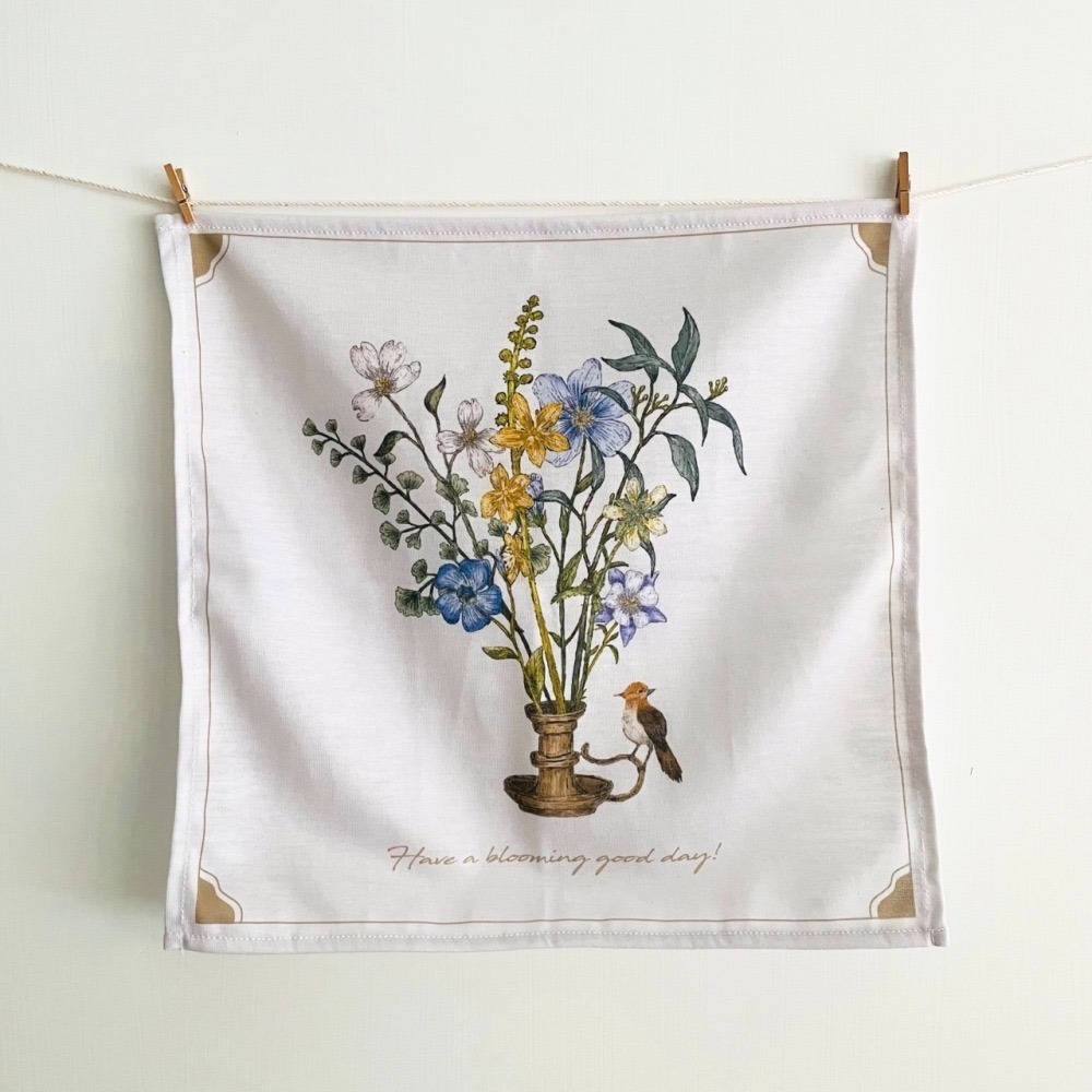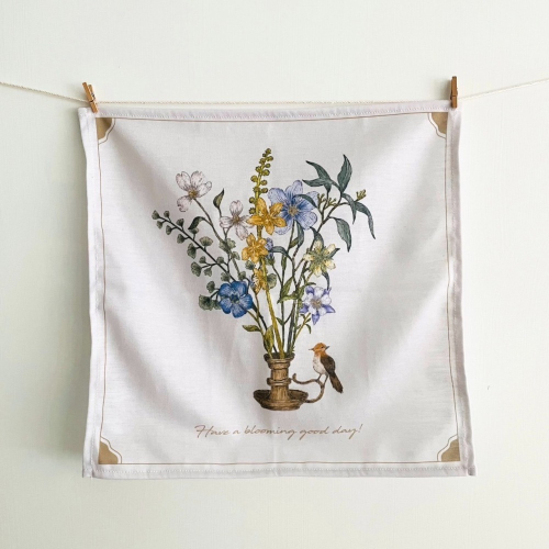 日常花景 - 鄉村田園、居家花藝般的慵懶調性,是生活中美好的一道風景。可搭配各種使用情境,不論是用來當作手帕、餐巾布或是拭手巾,柔美的繪製手法能為日常生活增添植感氛圍。