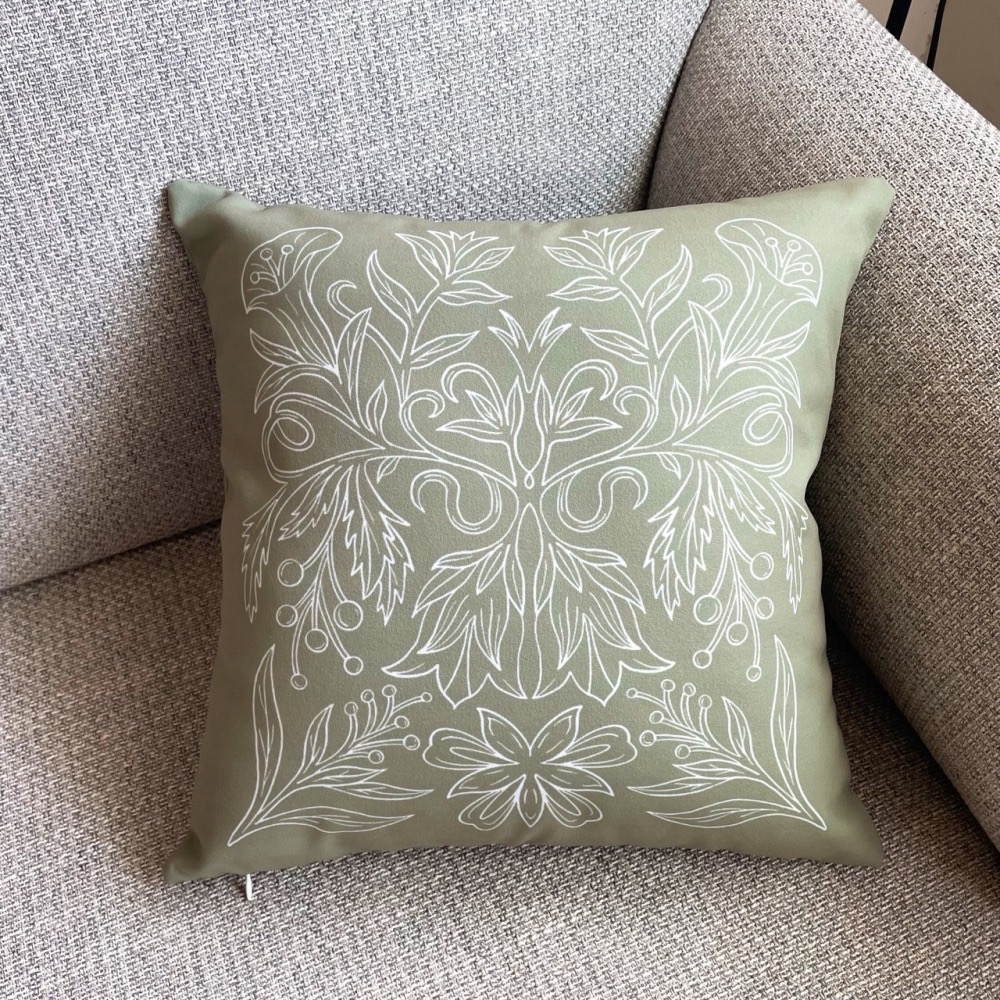 【漫步植物園系列 - 花草圖紋抱枕套 (抹茶綠)】