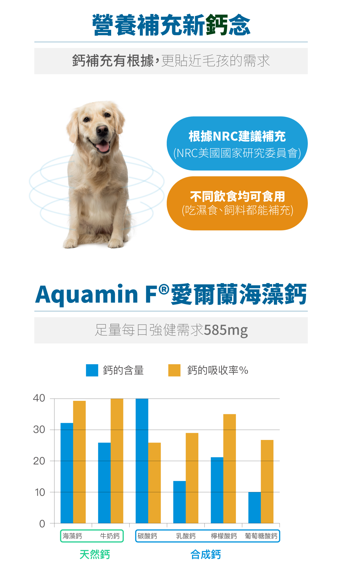 可做為「幼犬老狗」、「懷孕哺乳犬」、吃「飼料罐罐」或「鮮食生食」狗狗缺鈣的重要營養補充。