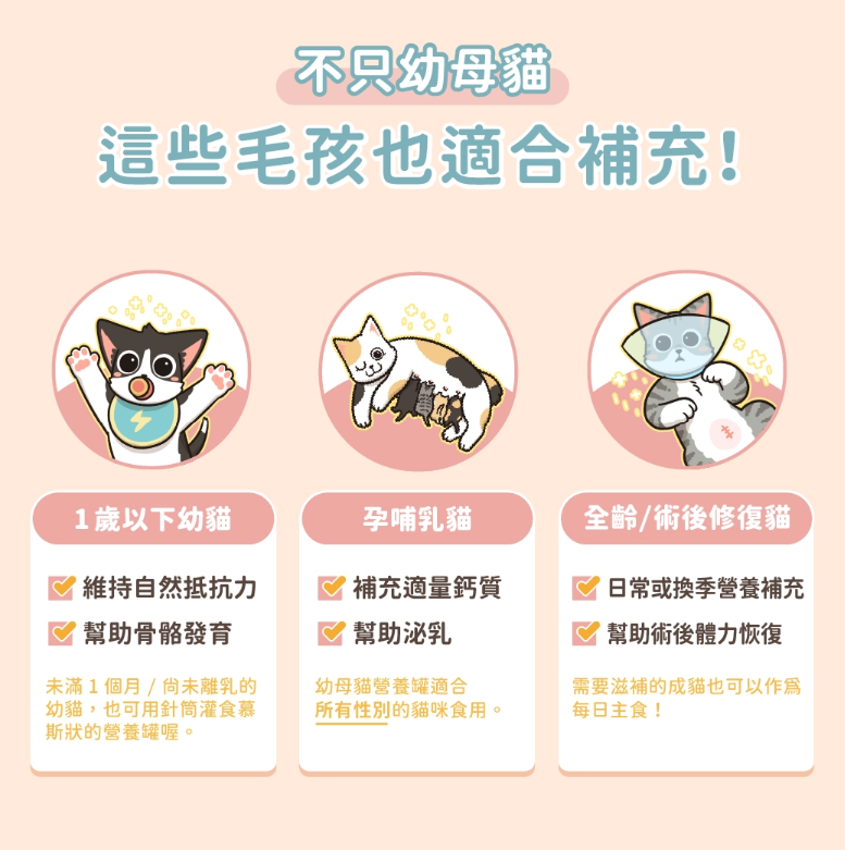 幼貓、哺乳孕貓罐頭、術後貓作營養補充
