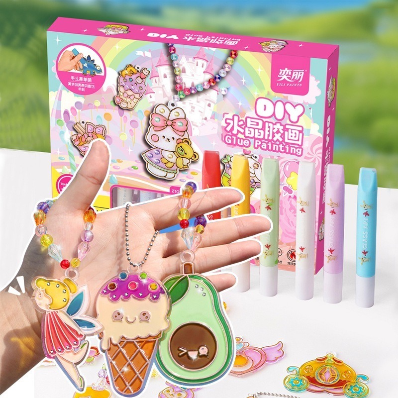 豪華版 - 顏料8支、鑷子1支、彈力繩2捆、膠片12片(隨機)、圓珠鍊12條、亮鑽、水晶珠