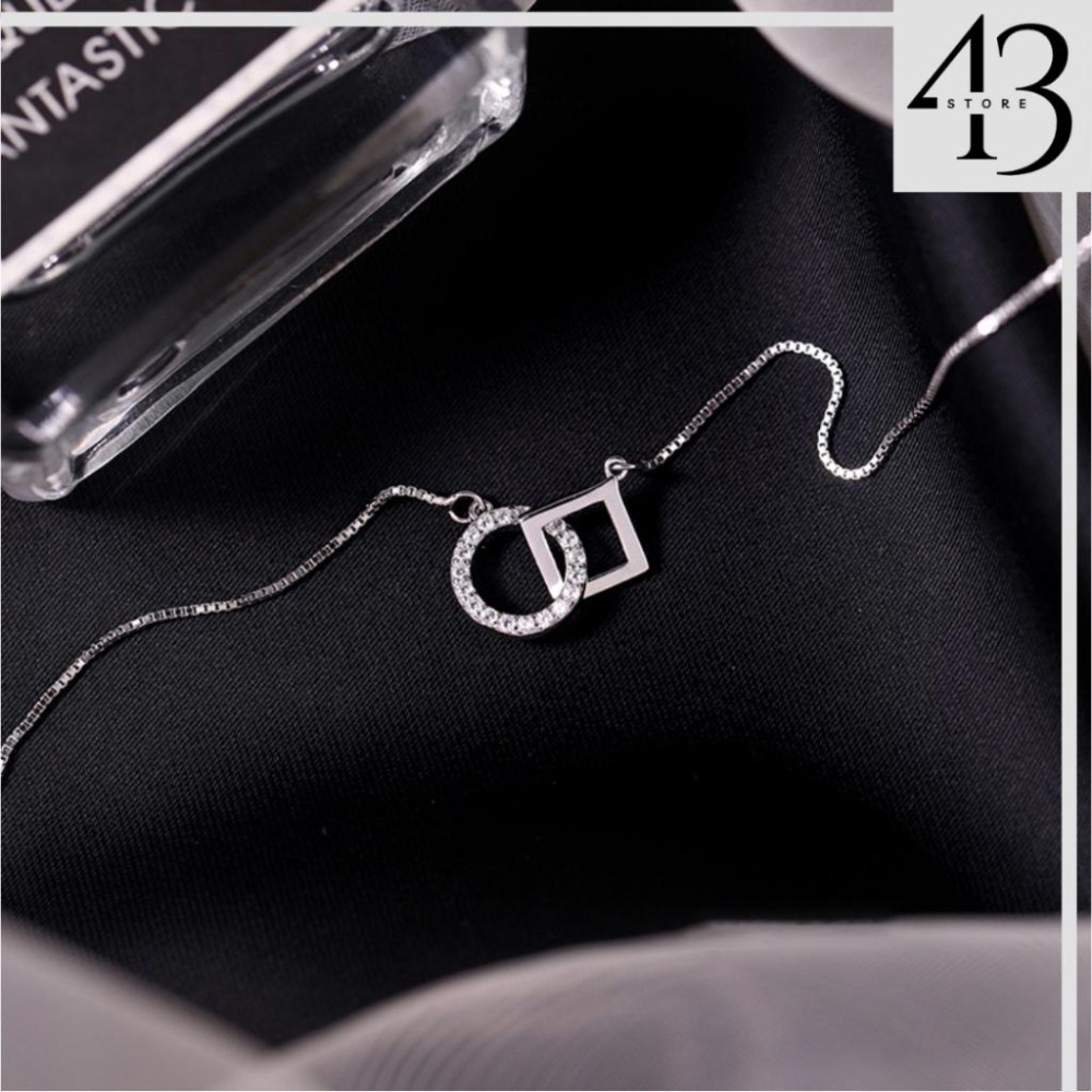 925純銀 方圓環扣 鑲鑽鋯石 項鍊