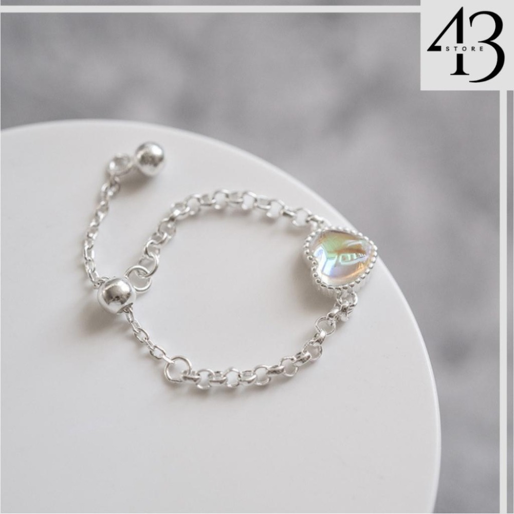 925純銀 月光石 愛心 心形 鏈條 可調式 抽拉 拉繩 鍊戒