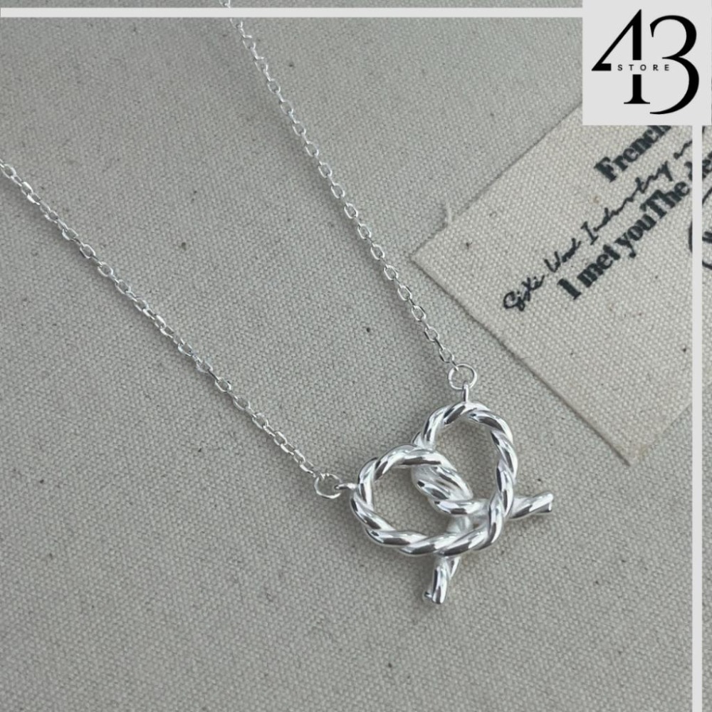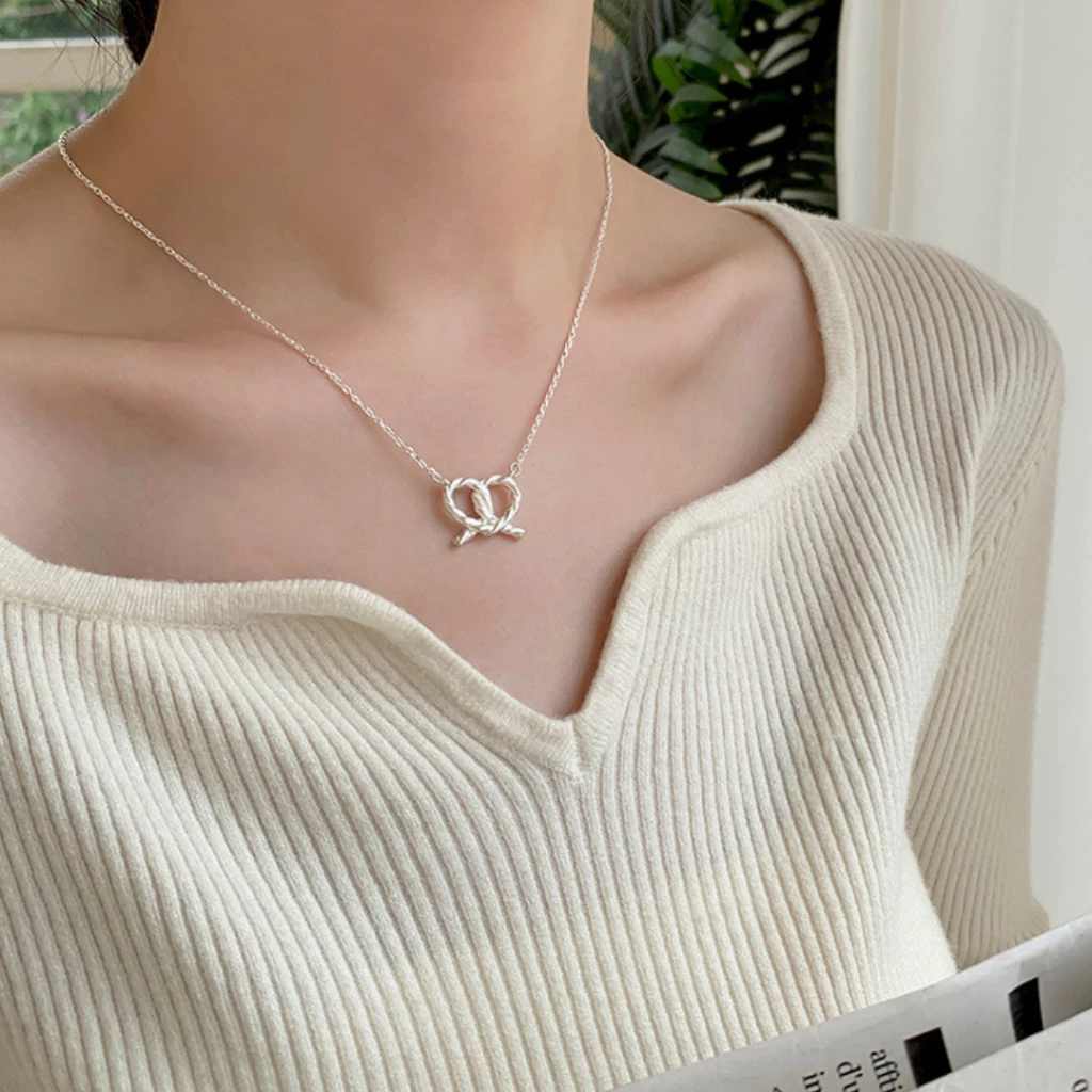 925純銀 鏤空麻花愛心 蝴蝶餅 繩結 項鍊