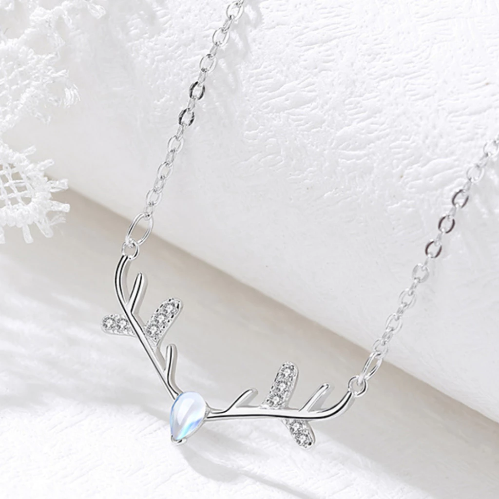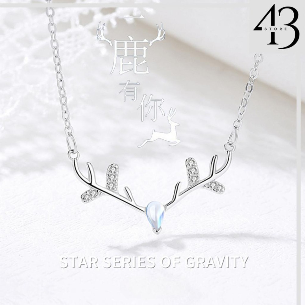 925純銀 一鹿有你 月光石 鑲嵌鋯石 馴鹿造型 項鍊