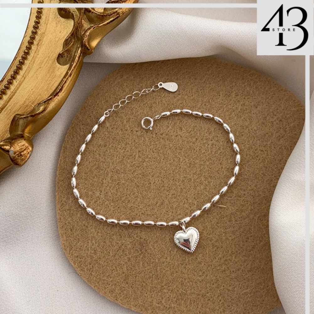 以銀米粒串珠,搭配愛心吊飾,呈現細膩優雅的質感。心形象徵浪漫與守護,設計簡約卻不失亮點