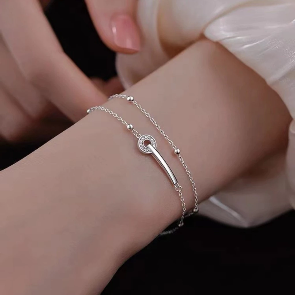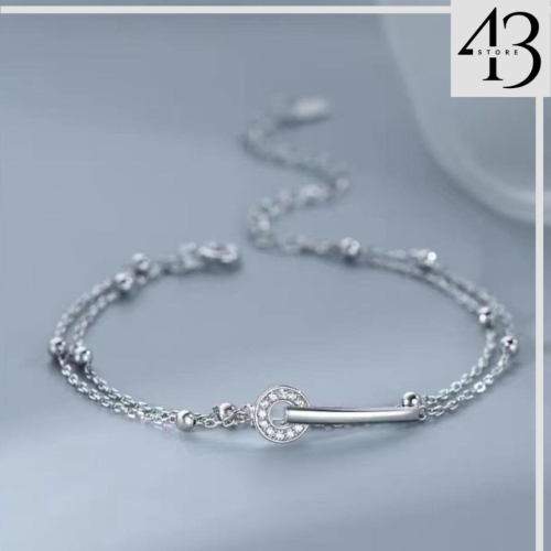 925純銀 一字圓環 雙層圓珠 手鍊