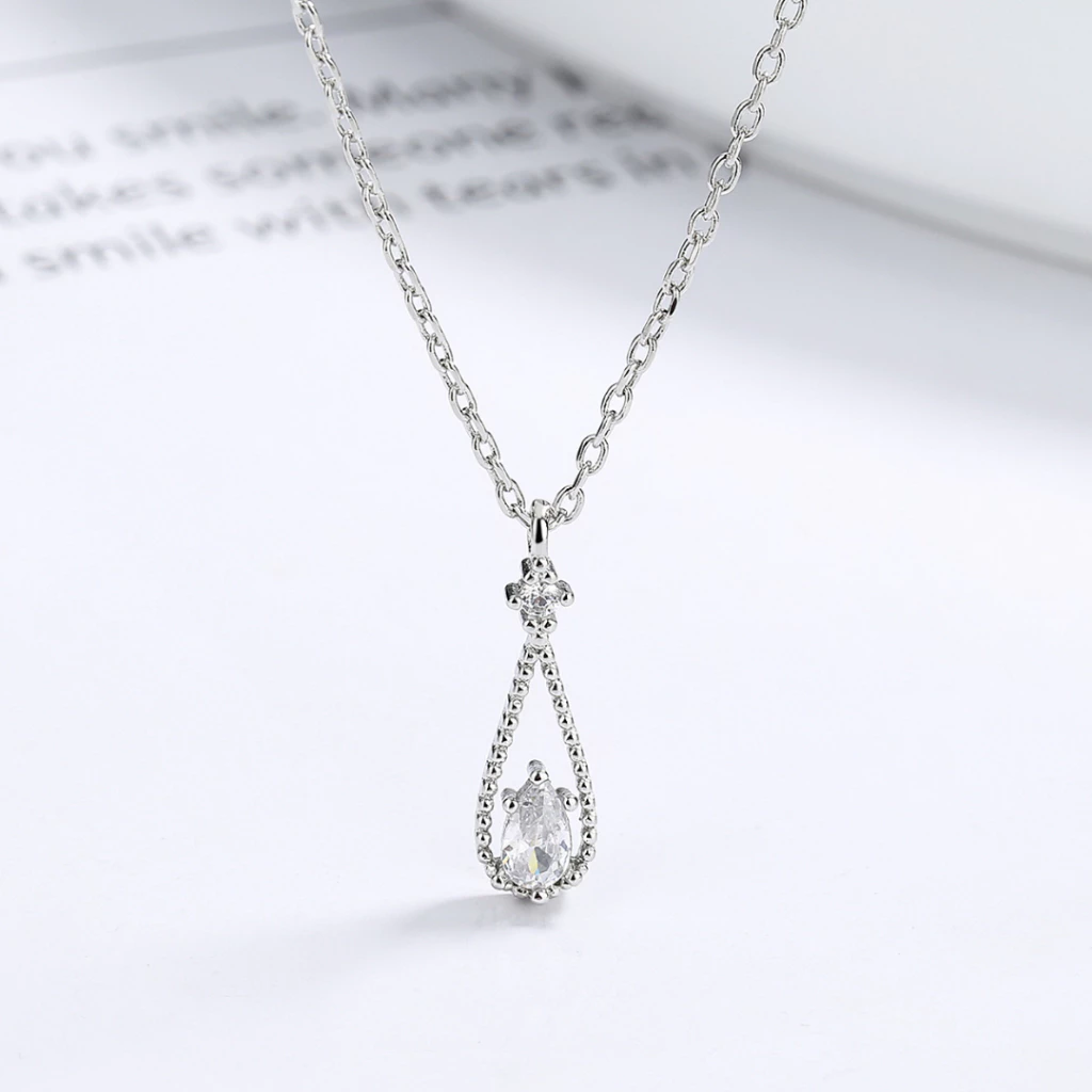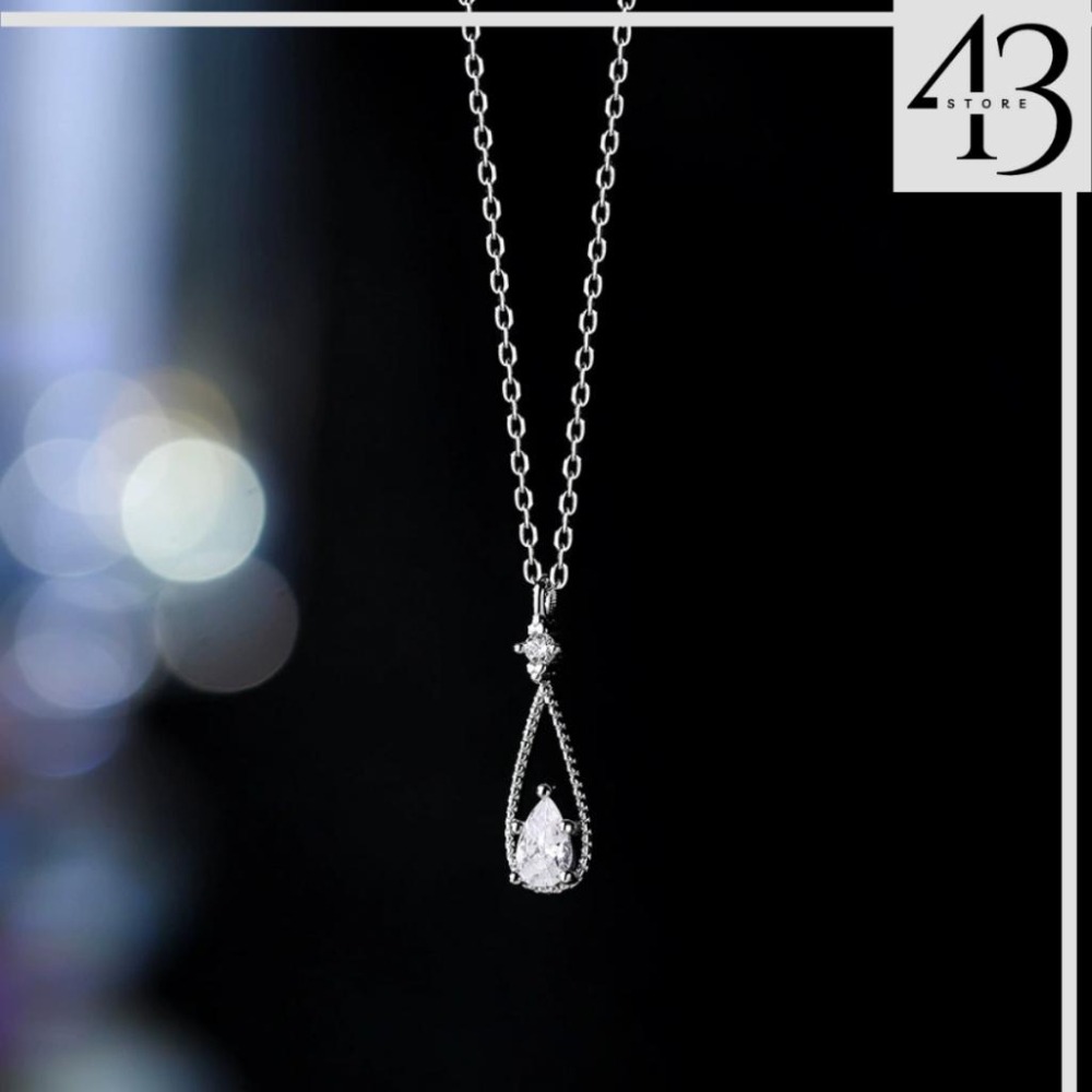 925純銀 水滴 鑲鑽鋯石 項鍊
