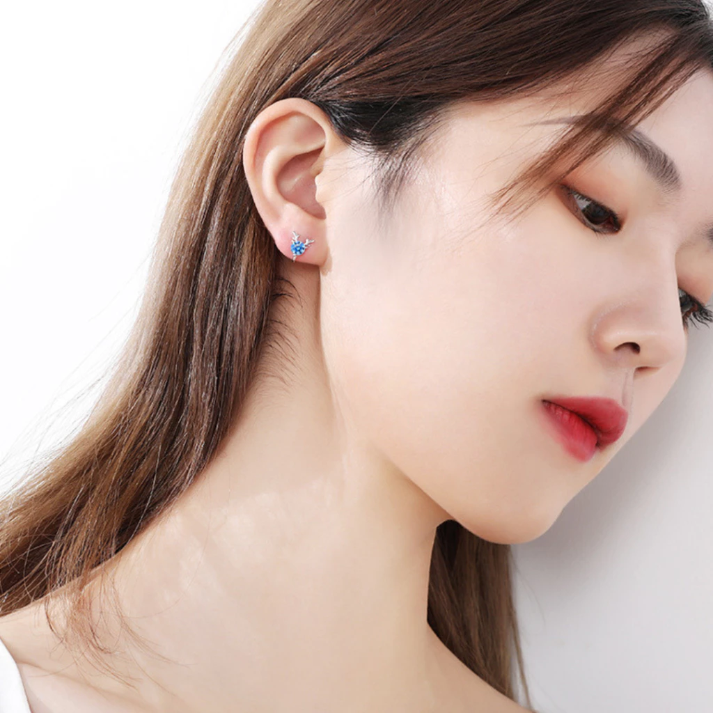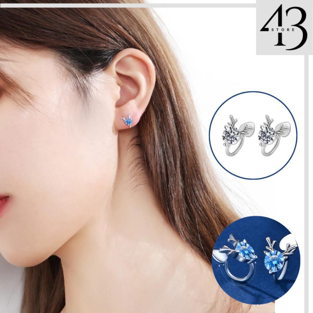 925銀 一鹿有你 純銀 藍白鑲嵌鋯石 馴鹿造型 耳夾