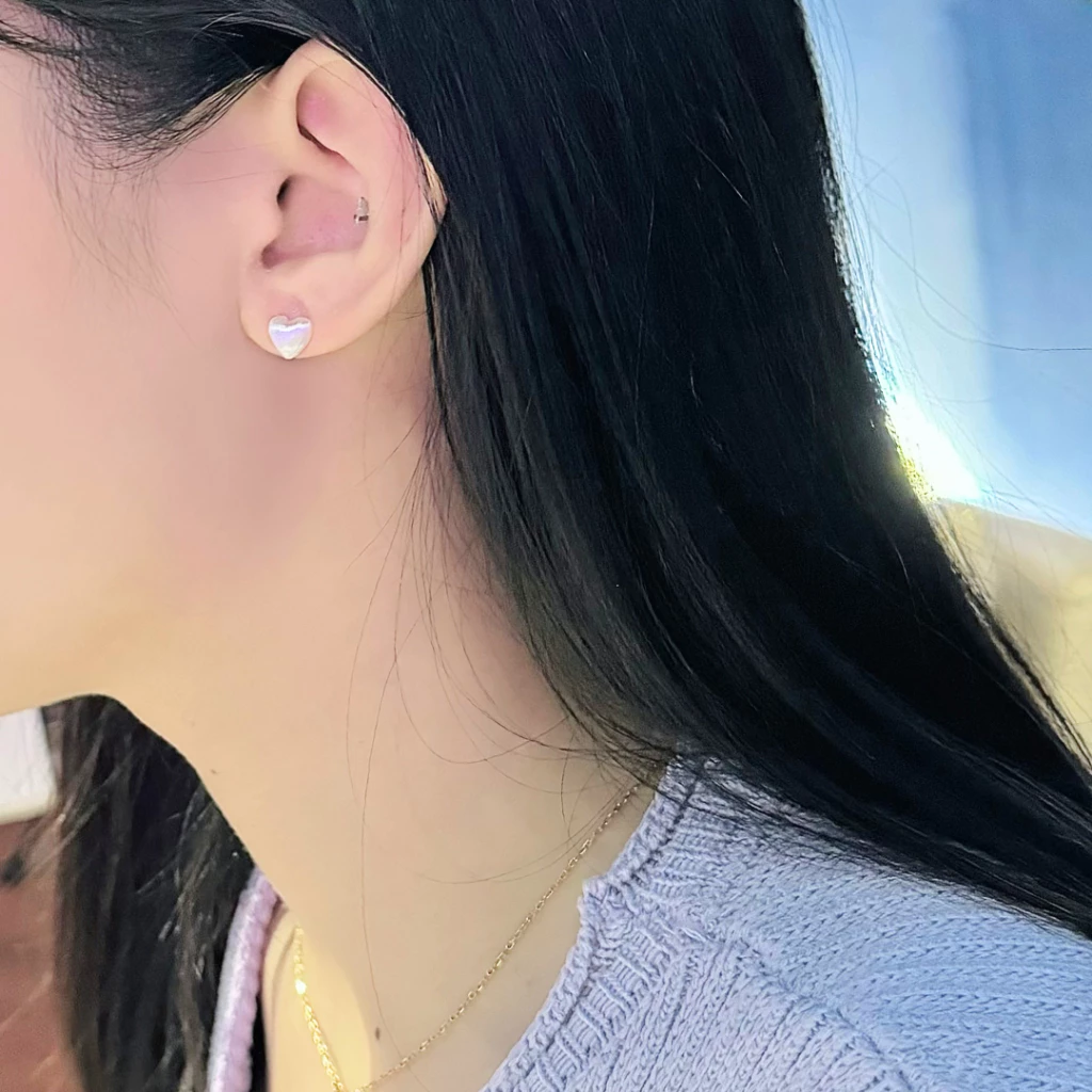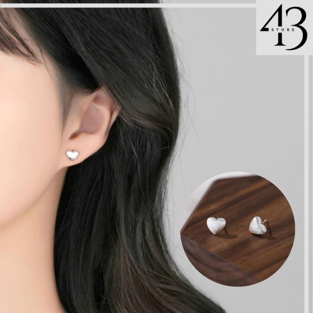 999足銀 髮絲紋 拉絲愛心 磨砂心形 耳釘