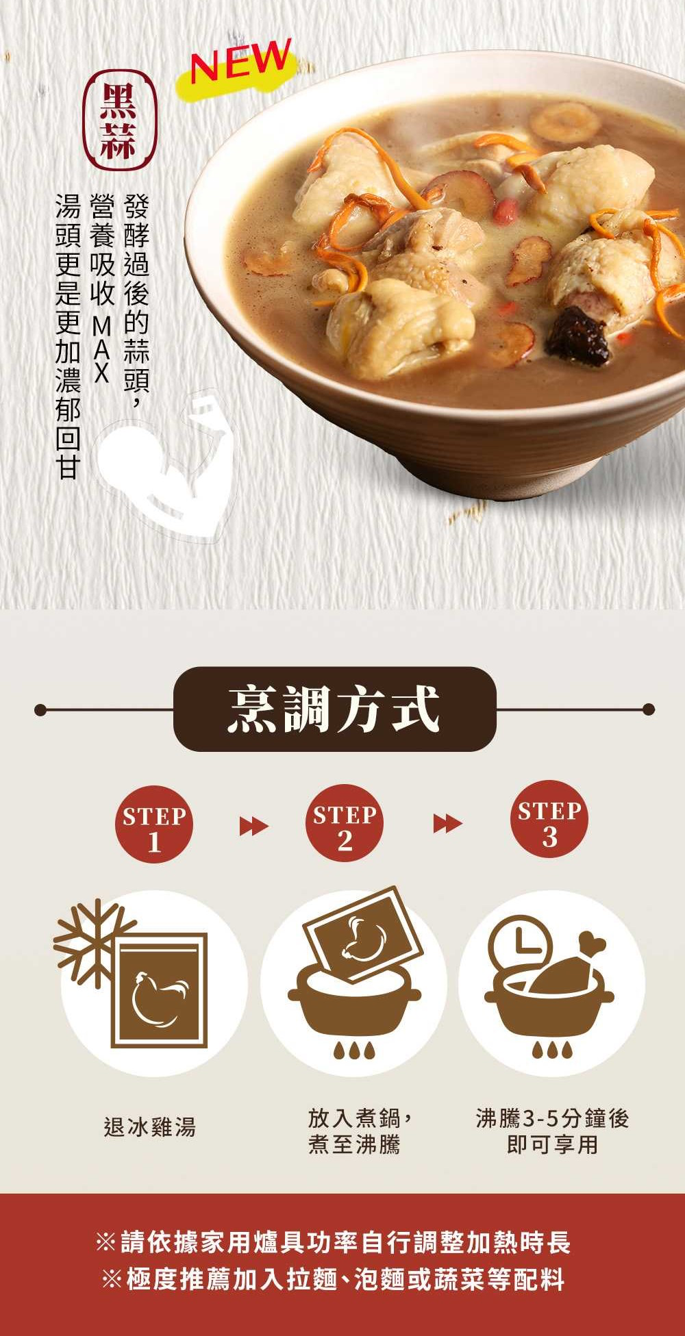 鍋煮-退冰雞湯,放入煮鍋,煮至沸騰,沸騰3-5分鐘後即可享用